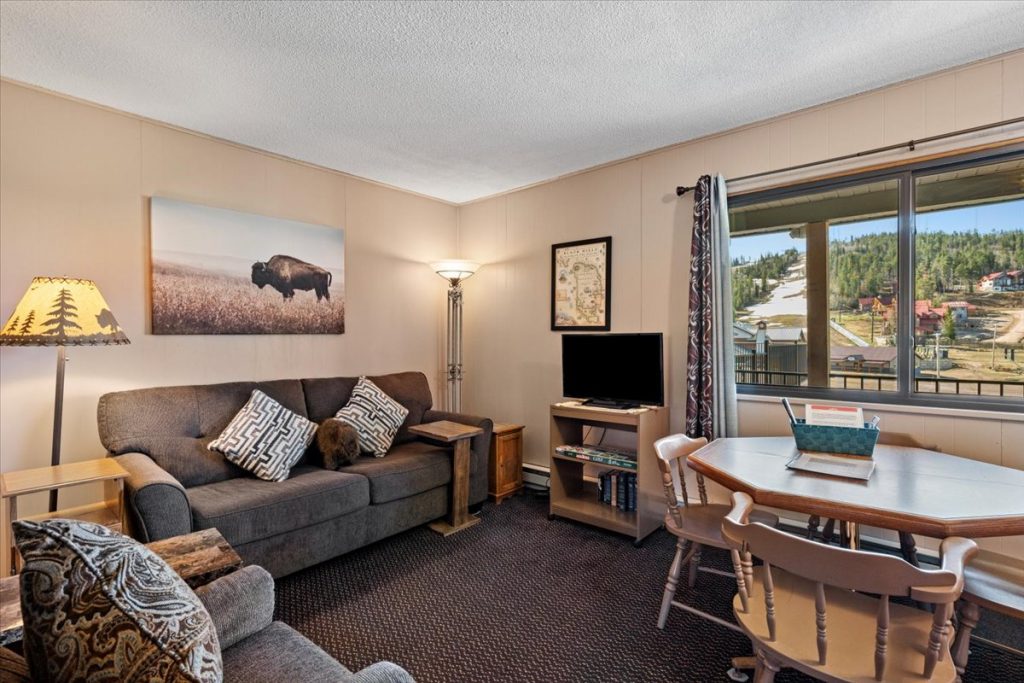 Condo A6 is a one of a kind unit on the second level. This two bedroom, one bath is located steps from the game room. It can host a maximum occupancy of 6 with two queen beds and one queen sleeper. For the BBQ lover, this unit is the closest to the grills on the deck, with a view of the ski resort of course!