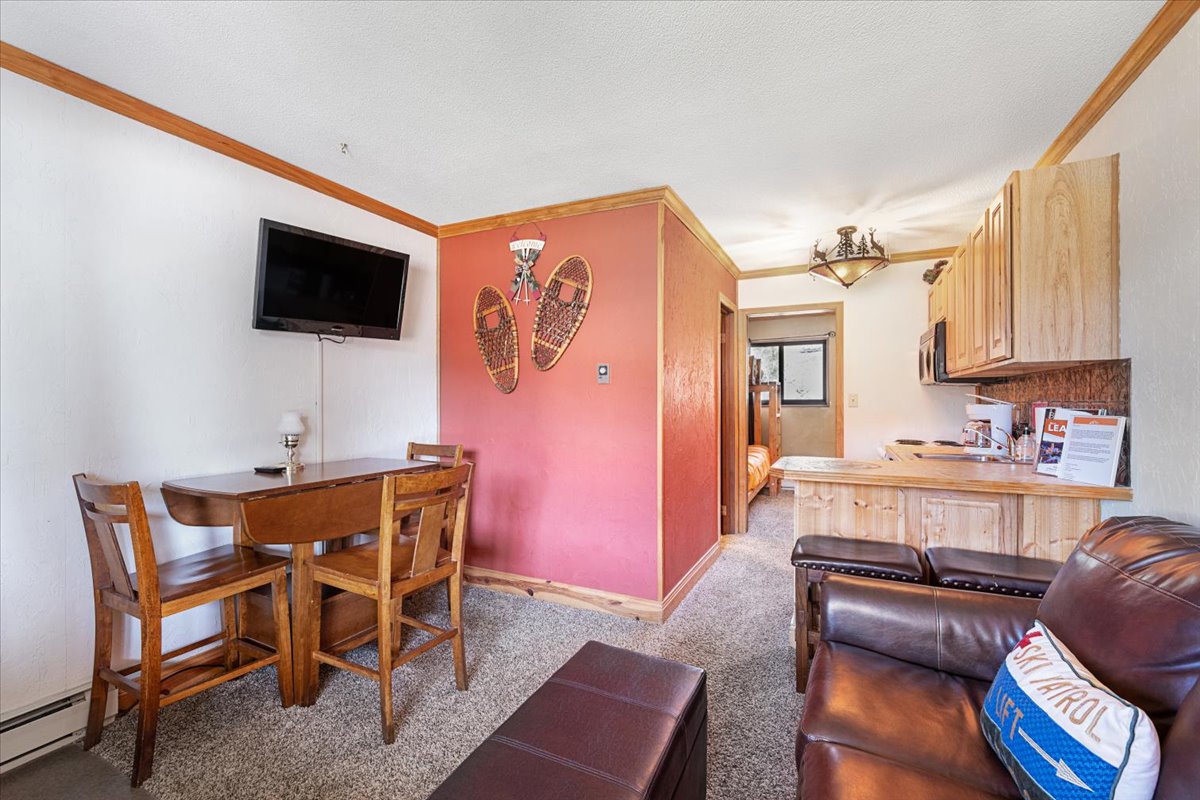 Condo A8 is a rustic one bedroom, one bath condo located on the second level. Perfect views with a maximum occupancy of 6 with a queen, full, and queen sleeper. Classy yet true cabin feel, this unit will accommodate any travelers needs.