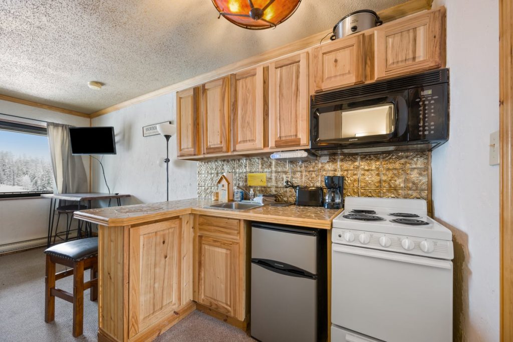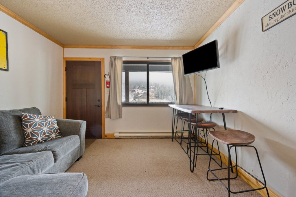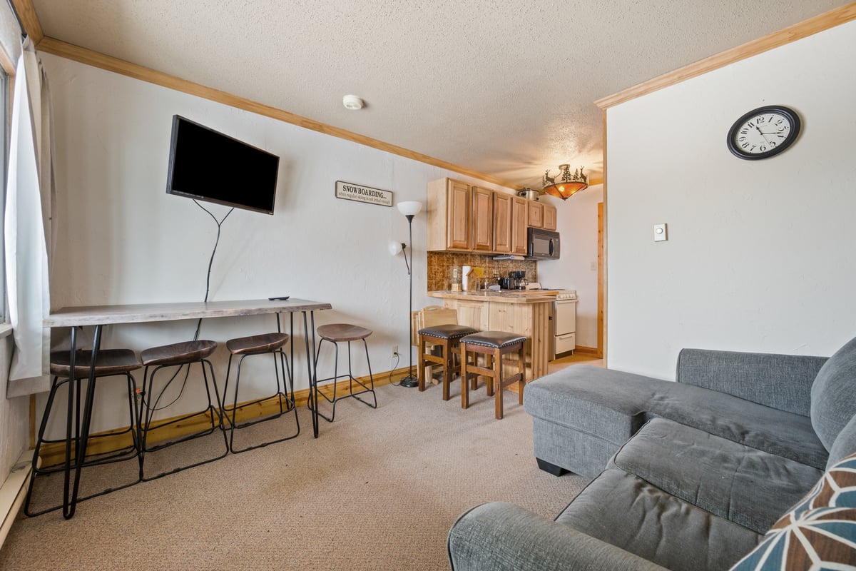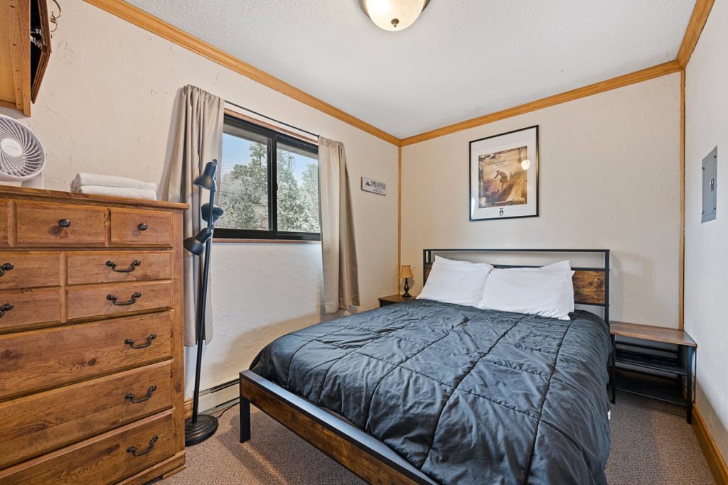 Another great getaway is A9- A one bedroom one bathroom condo located on the second level steps from the parking lot and your next ride. This inviting space has a queen bed, queen pull out sleeper making it a maximum occupancy of 4. Come back to your home away from home and relax after a day on the slopes and a dip in the pool.